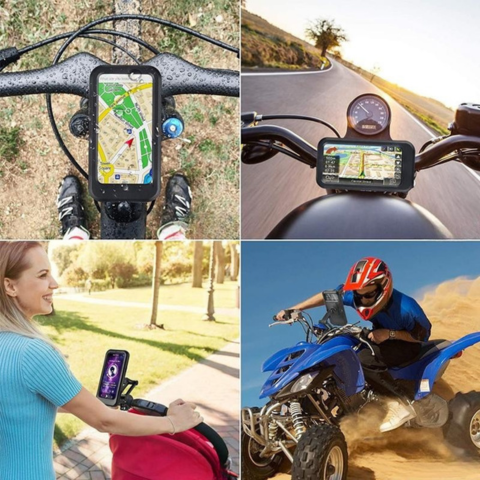 Denne holder beskytter effektivt din telefon mod regn, samtidig med at den sikrer hurtig opladning under dine ture. Let at fastgøre på styret, den giver en stabil holdning og direkte berøring til skærmen.