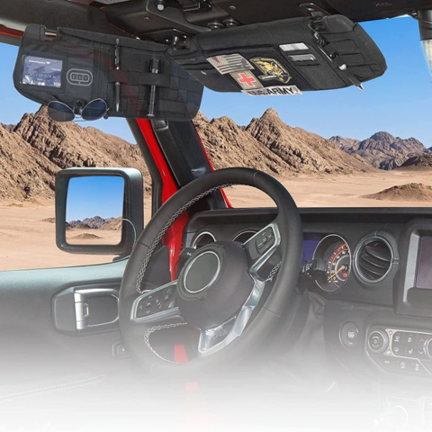Speciellt designad för Wrangler JL och JT tillverkade mellan 2018 och 2023, låter denna solskyddsorganisatör dig hålla dina viktiga tillbehör perfekt organiserade och lättillgängliga. Dess snabba installation, utan verktyg, och diskreta design integreras harmoniskt i kupén.